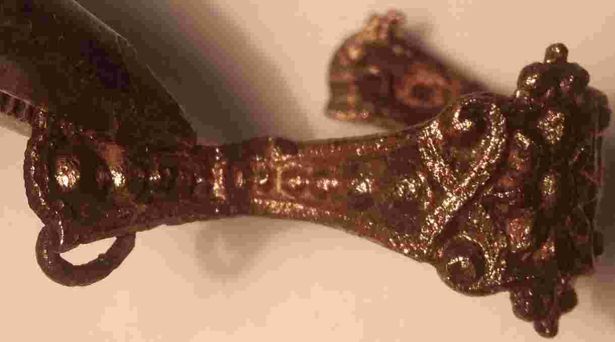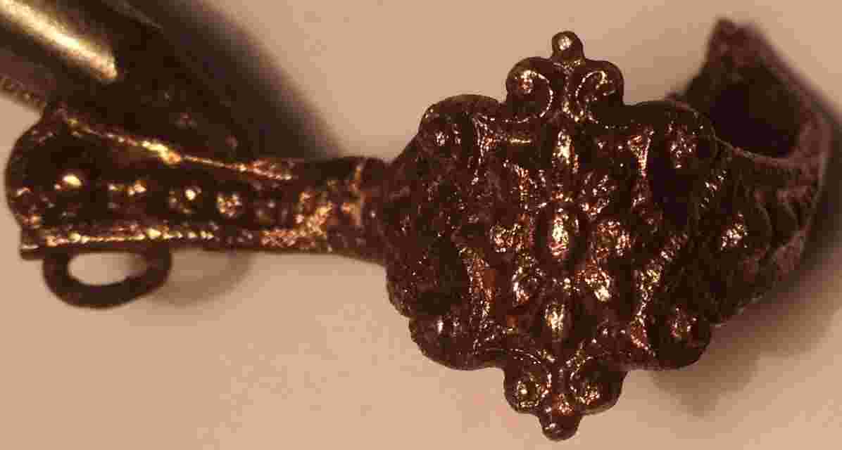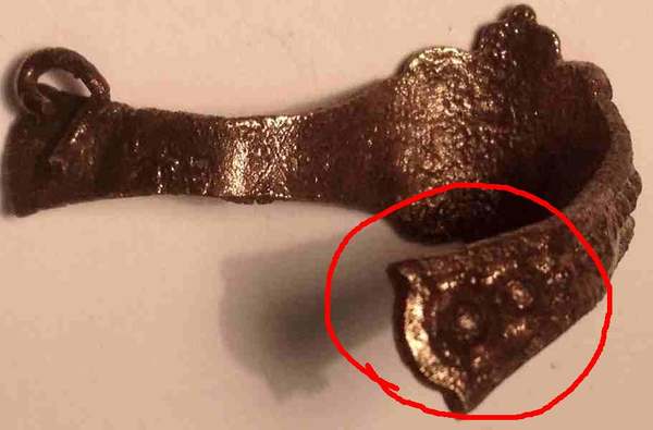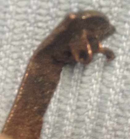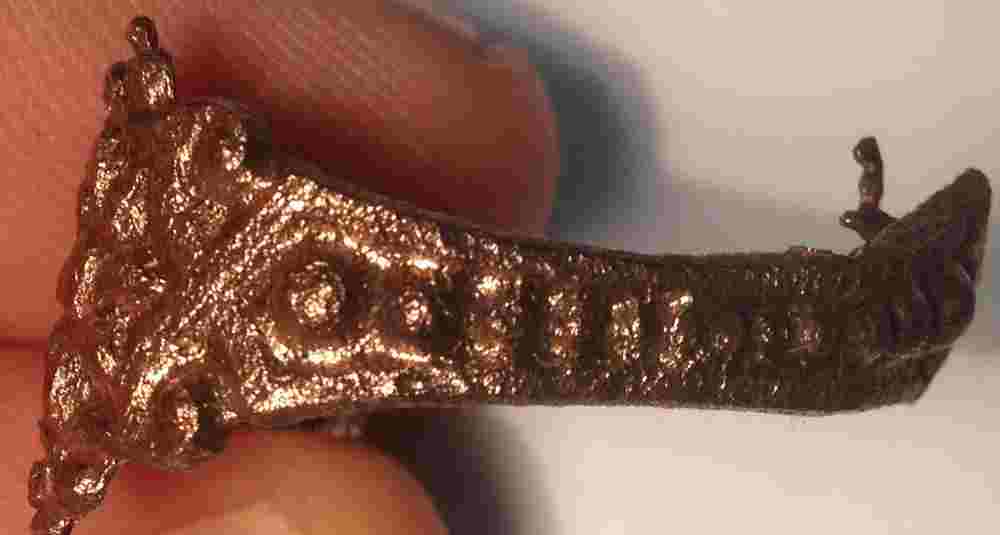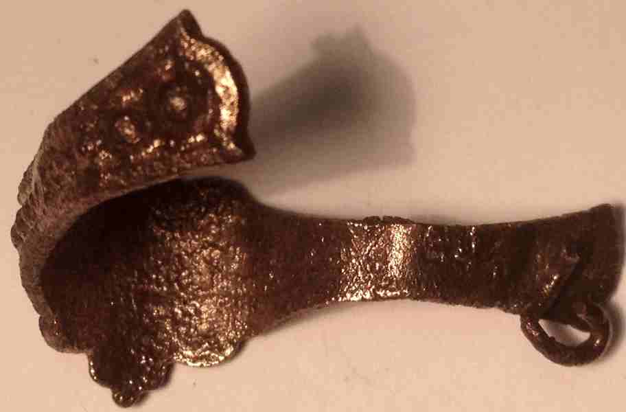 Pour moi c'est une broche fantaisie tordue qui a perdu son épingle d'accrochage... XIXè-XXè siècle...