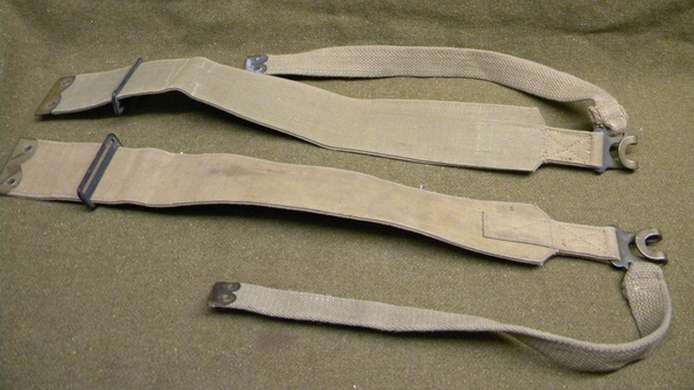 Sur la photo, c'est une paire de bretelles de sac de soldat anglais de 1942. A gauche, les fameux embouts de sangles...