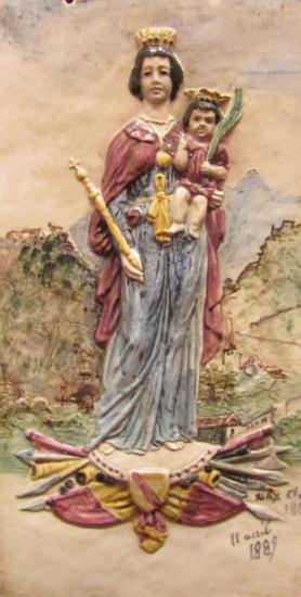 'Ancienne Plaque Faience Notre Dame Liberatrice Salins Les Bains Jura Signée Max Claudet 1889'