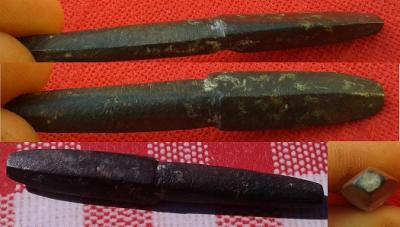 une partie applatie en 4 facettes avec bout arrondie de 3 cm de long. en coupe ca ferait un losange