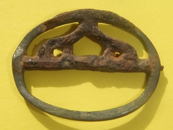 Oui c'est une boucle de chaussure ovale en fer à deux ardillons du XVIII ème.