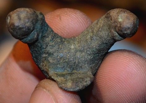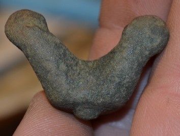 Mes photos ne sont pas terribles mais il me semble assez nettement voir deux têtes de bestioles et non deux phallus, après peut être que cet objet est d'époque antique mais je le vois plus médiéval.