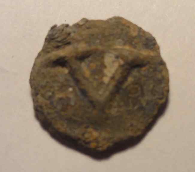 Vous en pensez quoi ? çà pèse 2.17 gr, 13 mm de diam. et j'y verrai un animal avec deux grandes oreilles (donc pas un cheval ?) et un long museau sur quatre pattes ? bon comme ça c'est pas évident !! et un V sur l'autre face. ( ça je crois que j'ai tout bon !! !