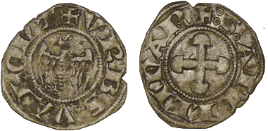 REVERS : + S APOLLINARS (O losangé). Croix dont les bras sont terminés par des croissants.'