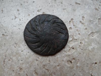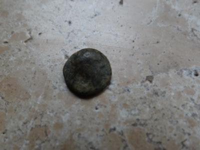 Petite trouvaille de l'aprés midi,pourrait'il sagir d'une monnaie poid 0,96g pour 1cm.Et si oui avez vous une id.D'avance merçi