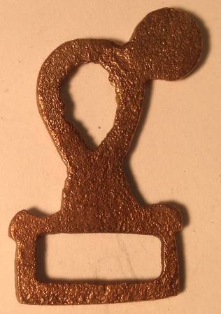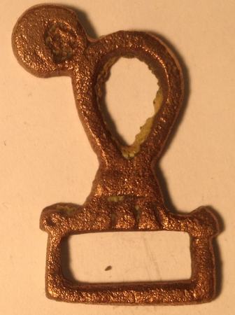 Cet objet recevait une agrafe de col et fonctionnait comme la plaque de réception, ou 'barbacane' d'une plaque-agrafe de ceinture XVIème/XVIIème siècle.