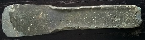 Elle mesure 13,5 cm sur 3,2 cm au plus large. Avez vous une idée pour une datation et surtout pourquoi la couleur est-elle si grisâtre pour du bronze? Est-ce une histoire d'alliage? Un peu plus de fer ou de plomb que d'habitude? Est-ce l'usure?