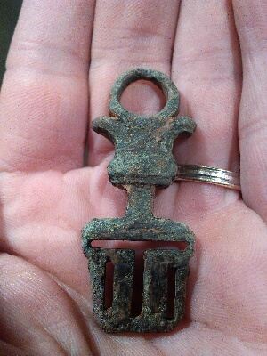 a tous ,voici ce que je pense etre une magnifique clef gallo-romaine ,trouvè par un pote dans le 03 en pleine foret , malgre tout il a un doute ,du coup moi aussi,alors si quelqu un pouvait nous confirmer ou nous infirmer l identification ,merci a vous ,elle mesure 6 cm de haut sur 2,5cm au plus large,je n ai pas le poids.