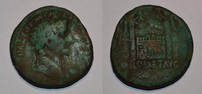 Belle trouvaille ! C'est un As frappé sous Tibère entre 14 et 37 ap J.-C.