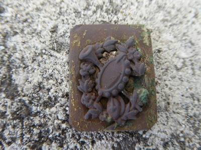 , petite plaque décorative trouvé hier dans un champ dans le 17 Charente maritime, elle mesure 24mm de long pour 19mm de large et un poids de 2.51grs,il reste de la dorure, Est-ce une déco de meuble ou insigne militaire ou autres idées je suis preneur et si quelqu'un a une idée de la datation?
