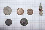 Voici mon butin, Je n'arrive pas à savoir si la pièce en bas à gauche est un double tournoi, si quelqu'un pouvait m'éclairer :-)