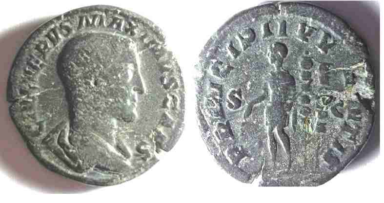 Est classé comme AS , RIC 10 frappé en 236 vu le poids et le diamÚtre 24:25mm 11,7 grammes , les sesterces de ce type mesurent +30mm et pÚsent + de 20 grammes