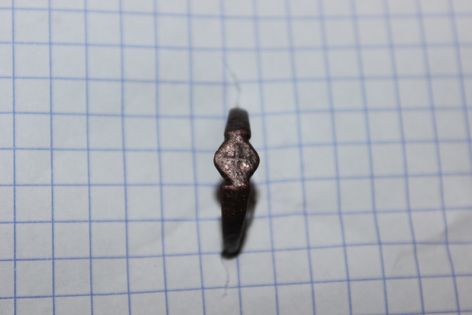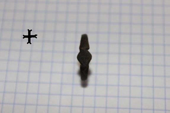 Et pour finir un petite bague en...???, le dessin dessus est une croix, j'ai tenté de reproduire car la photo ne rend pas bien. Pourriez vous me dire si vous avez des infos sur ce type de bague SVP?!