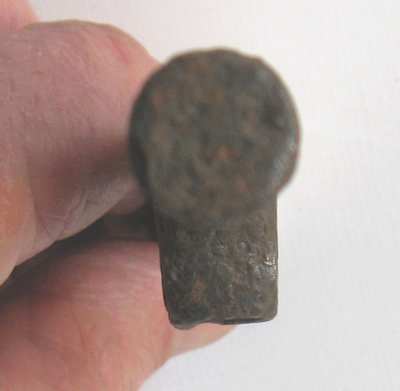 Trouvé en surface ce marteau ( Photo prises après avoir retiré sa gangue de rouille, je regrette de n'avoir pas pris une photo avant ) Marteau de tapissier ancien ? Votre avis m'intéresse Dimensions lg: 13cm 50 trou entré 1cm70 trou sortie 1cm50 Diamètre partie ronde 1cm30