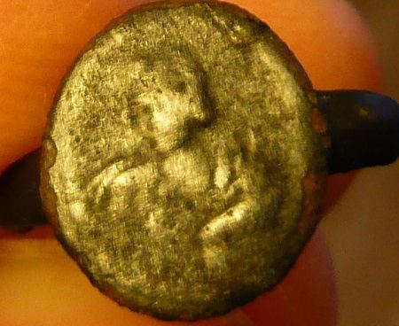Au premier abord, en la sortant du trou j'ai cru Napoleon, puis en la nettoyant j'ai cru voir un empereur romain, puis une enfant; j'ai même cru voir 2 visages (un de face et un de profil).