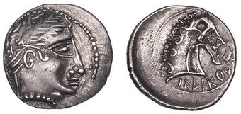 légende KASIOS ont le buste à droite et la tête de cheval à droite ,ces monnaies sont déjà rares