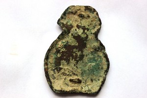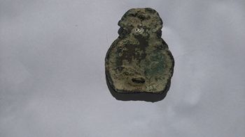 Côté pile il y a des traces de dorure sur une partie du contour, côté face tu peux voir sur le bas, sur la base la plus large un petit téton rectangulaire et le même sur la tête en haut . Côté face toujours Est creux.