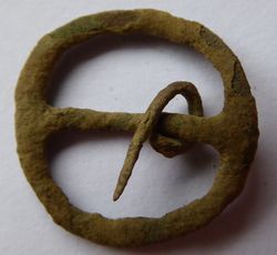 Je m'interroge sur l'utilité de cette très petite boucle (trouvée en forêt) de seulement 15 mm de diamètre A quoi pouvait-elle bien servir ? L'ardillon est si fin quant à lui que je ne l'imagine pas retenir quoi que ce soit