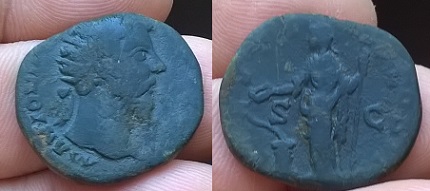 je souhaiterais identifier cette monnaie en bronze qui me semble romaine.