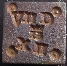 Voici un poids monétaire trouvé dans la Yaute. Il pèse 9.20 gr. Sept deniers et douze grains, il me semble. Je crois distinguer les lettres IB sous une couronne. Qu'est ce que cela signifie?