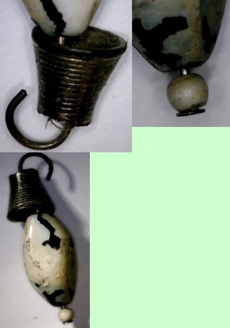 Cette perle :ressemble à de la céramique. N'a pas exactement la forme d'un d'un ovale arrondi mais plutôt d'un parallélépipède conique aux bords arrondis ( Ouf!!! pas facile la description !!)