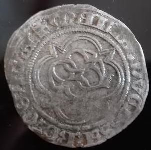 Petite demande d'id pour cette monnaie fortuitée dans une boursée de 9 pièces. Je pense à un gros au M gothique de Marie de Bourgogne 1478...?