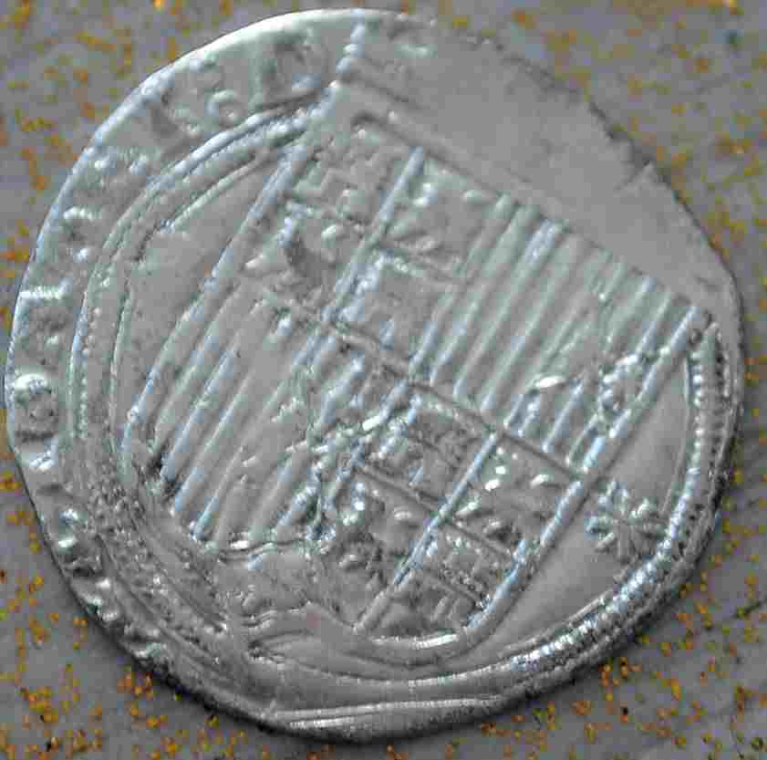 Pour la tienne, BERURIER, je ne vois pas de trace de lettre d'atelier au revers comme c'est parfois le cas pour certains Réaux, il faudrait que tu observes ce revers à la loupe pour tenter d'y voir une trace de lettre, B pour Burgos, S pour Séville, C pour la Corogne... car en avers elle n'y figurait pas au vu de tes photos R1 et R4 qui montrent l'espace entre le grènetis et l'écu bien préservé de l'usure.