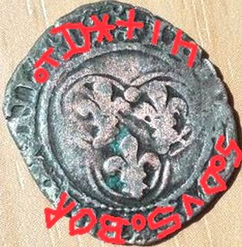 Petite monnaie d'une boursée (tjrs la même que les posts 129276 et 129293) . Les autres monnaies datent de la 2nde moitié du XV ème (savoie, liège et bourgogne... autant dire d'un peu partout...)
