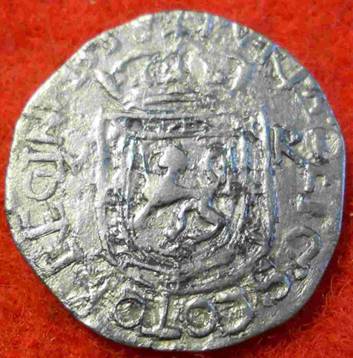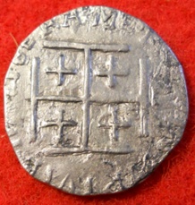 Tous prêt de cette trouvaille ,j'ai trouvé un morceau de fermeture de coffre en fer ,avec dessus les même crois que sur la monnaie!!!??? Bazard non?????