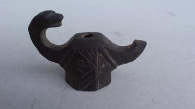 Il est creux et il y a des stries sur le dessus et deux tête de dragon sur les cotés a l’origine (mais hélas il ne m’en reste plus qu'une)