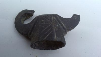 J’ai trouvé dans une labour du 68 cet objet en bronze (je pense) il fait 2,5 par 2cm