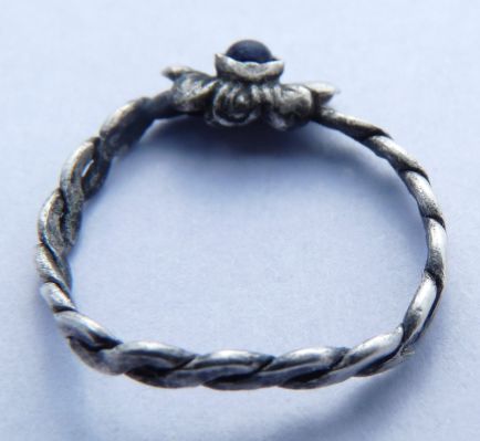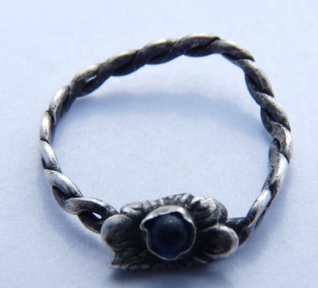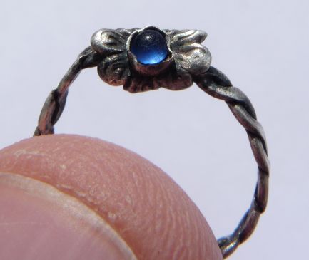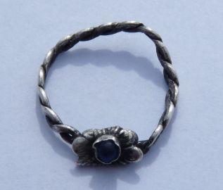 Je n'y aperçois aucun poinçon et pour la pierre oui vu le sertissage surement de la verroterie,peut être que j'irais faire tester cela chez un bijoutier pour confirmation et essayer de la redresser un peu ..