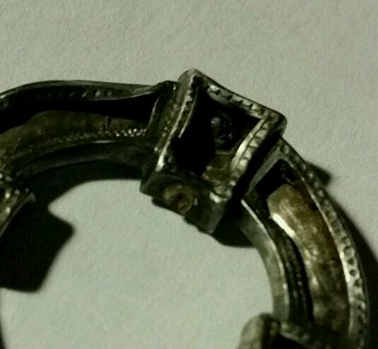 Zoom sur une partie cassée. Cassures sur deux branches opposées. Dans le même axe que l'épingle au dos.