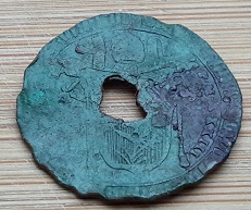 Plus bcp de temps pour la détection en ce moment mais j'ai réussi à faire 3 petites sorties pdt mes congés. Je suis intrigué par cette monnaie ou jeton qui a perdu son centre et trouvée assez profondément. Elle est en cuivre, diamètre 25mm