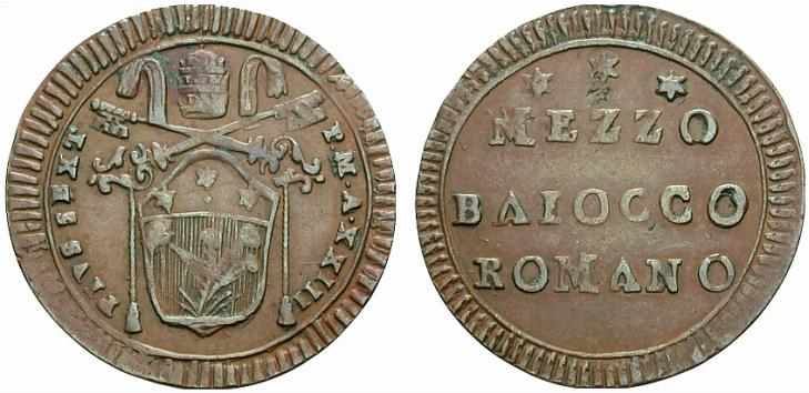 C'est une monnaie: ''MEZZO BAIOCCO ROMANO'' Demi Baiocco pour le pape Pie VI