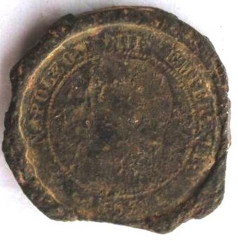 J'avais aussi trouvé une empreinte négative similaire (Napoléon III) sur un métal ou alliage qui s'effrite inexorablement (je pense à la lèpre de l'étain ou un métal 'plombeux'). l'objet en question a, sans doute, était réalisé par curiosité...
