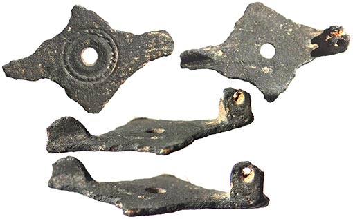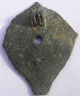 Petit objet trouvé dans un bois...je pensais à un couvercle de boite à sceau..mais j'ai un doute peut être un morceau de fibule...auriez vous une idée ...longueur: 30 mm
