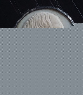 Je pense au dessus d'une bague. La matière me laisse perplexe; elle ressemble à une sorte de plâtre mais au regard de son état de conservation... ... cela me paraît bien improbable!