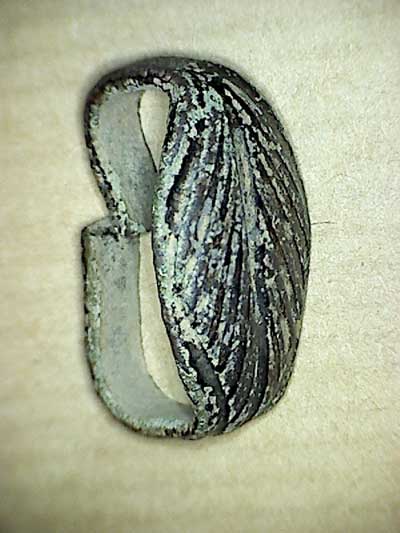 trouvaille du jour cette objet en bronze.il ressemble a une bague mais forme trop carré, donc je ne pense pas.