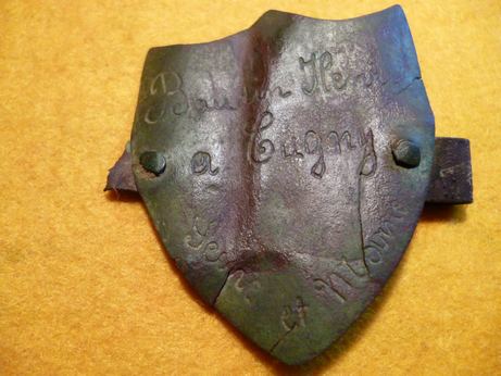 Auriez vous une idée quant a cette plaque en forme de blason avec des inscriptions bien
