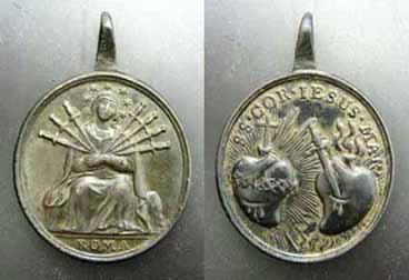 Merci beaucoup pour votre aide . Effectivement il s'agit d'un médaille de rosaire ou de chapelet . Il y a bien un tout petite cassure la ou tu as mis la flèche . Mais celle est vraiment très peu visible . Pas étonnant que cela est cassé car la médaille fait presque la moitié en épaisseur comparé à l'autre coté ou il y a encore la bélière . J'ai pas mal de médaille religieuse mais c'est ma première issue d'un rosaire . En plus elle est d'un petit module et est vraiment très jolie en main avec une belle patine ;-)