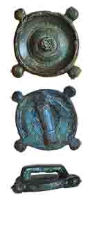 Le passant de harnais le plus proche que j'ai trouvé sur Artefacts est cet exemplaire du III ème siècle en forme de petit umbo à profil sinusoïdal terminé par un bouton et à bélière rectangulaire au revers.