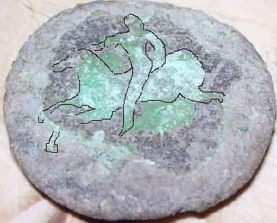 Le gros bronze de 30mm qui ne ressemble plus à grand chose ( peut être un cavalier montant un cheval).