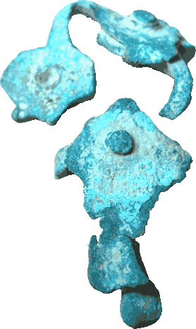Trouvé hier cette espèce d'attache décorative, probablement du cuivre.