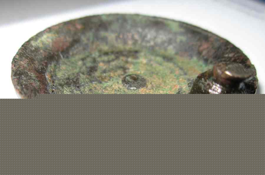 Le revers laisse apparaître des traces de coulage, et un bitognio,lui même en bronze.