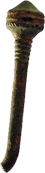 Mais n'étant averti ni sur ce genre d'objet, ni sur cette période, je suis incapable de l'identifier correctement ('épingle à tête biconique ou sub-biconique de type...'), ni de la dater de manière plus précise (par exemple fin du bronze moyen, ou bien début du bronze final, ou autre...)