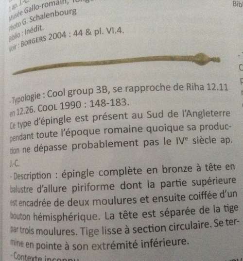 Vincent, pour mon adresse courriel, cela signifiait juste 'bon-bip at netcourrier.com'... Ta doc a l'air très intéressante et si tu acceptes de me l'envoyer, je reste très intéressé, même si comme le dit Roi2Pic, en l’occurrence, les deux épingles romaines présentées sont bien différentes de celle que j'ai trouvée.