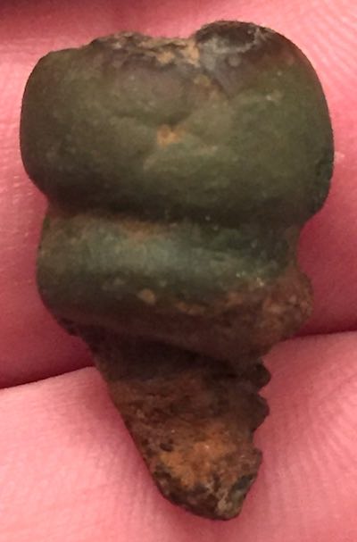 Bronze , diam 20 mm pour 15 mm de hauteur avec un reste de ferraille rouillée qui devait être la tige..