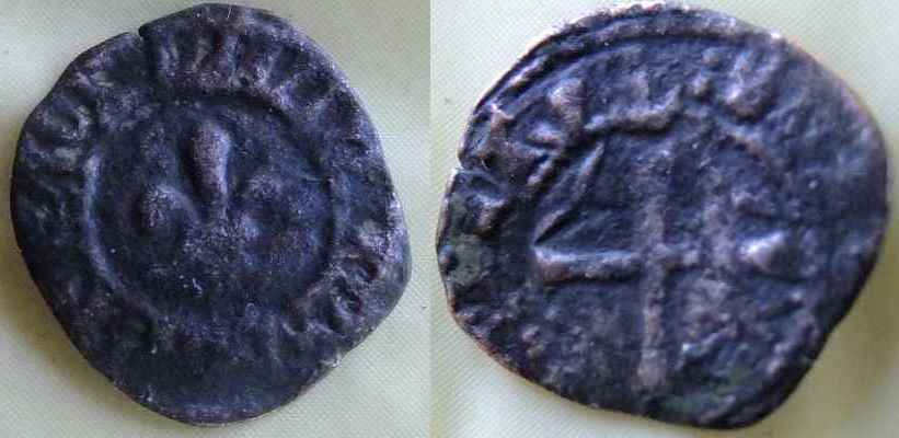 je serais plutôt pour un denier coronat de Marseille de Charles VIII comme Bidouille bien que le trilobe et le quadrilobe soit à peine visible