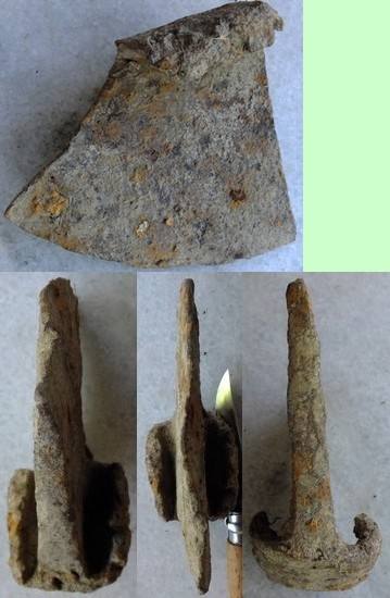 fortuité sur un ancien chemin ardéchois dans une région de mines de fer cet objet curieux qui peut être soit une hache brisée (????) soit un outil spécifique de mine ...